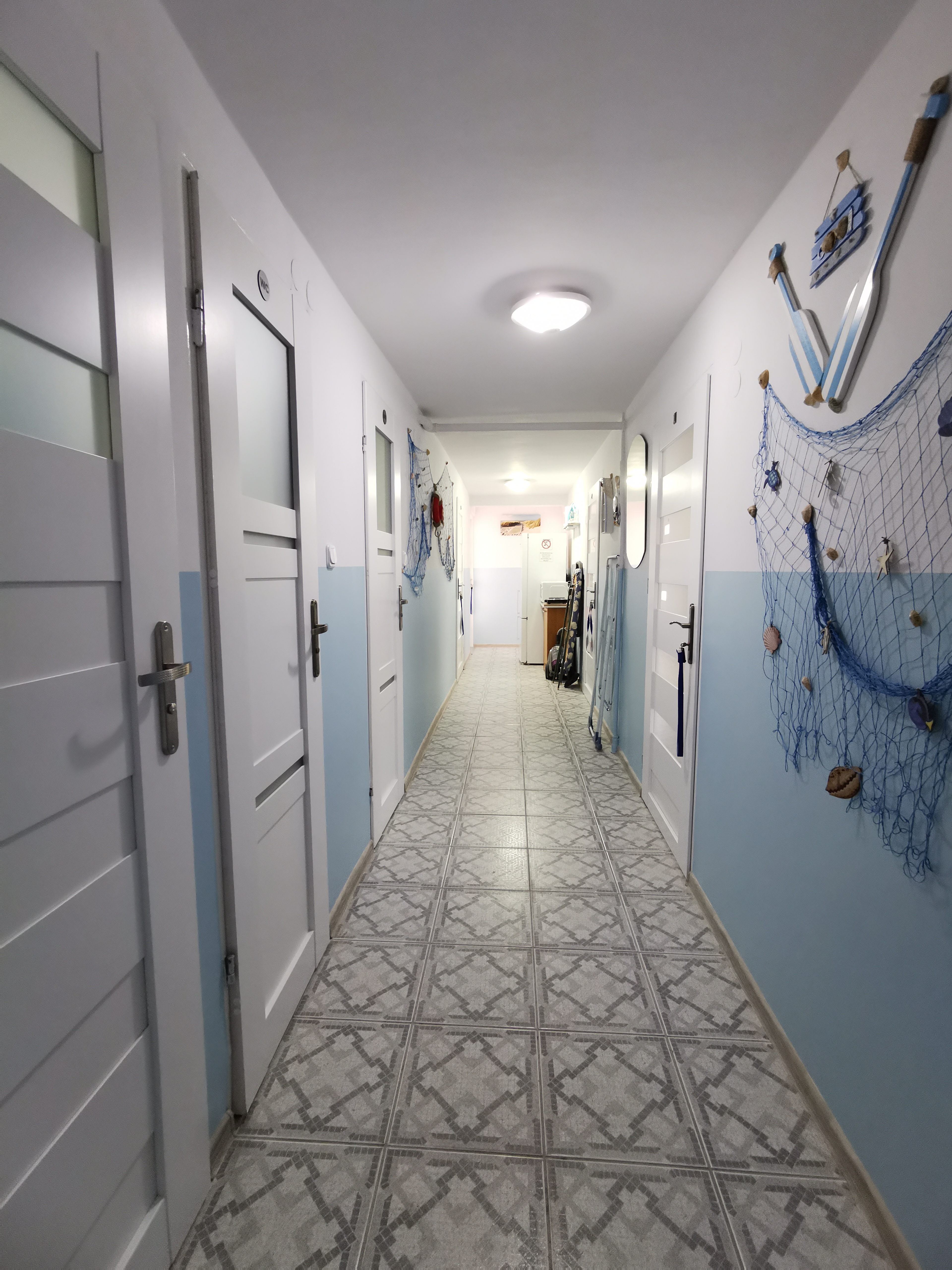 Na korytarzu znajduje się: lodówka (każdy pokój ma swoją półkę), mikrofalówka, kuchenka elektryczna, żelazko, odkurzacz, deska do prasowania, suszarka na pranie.