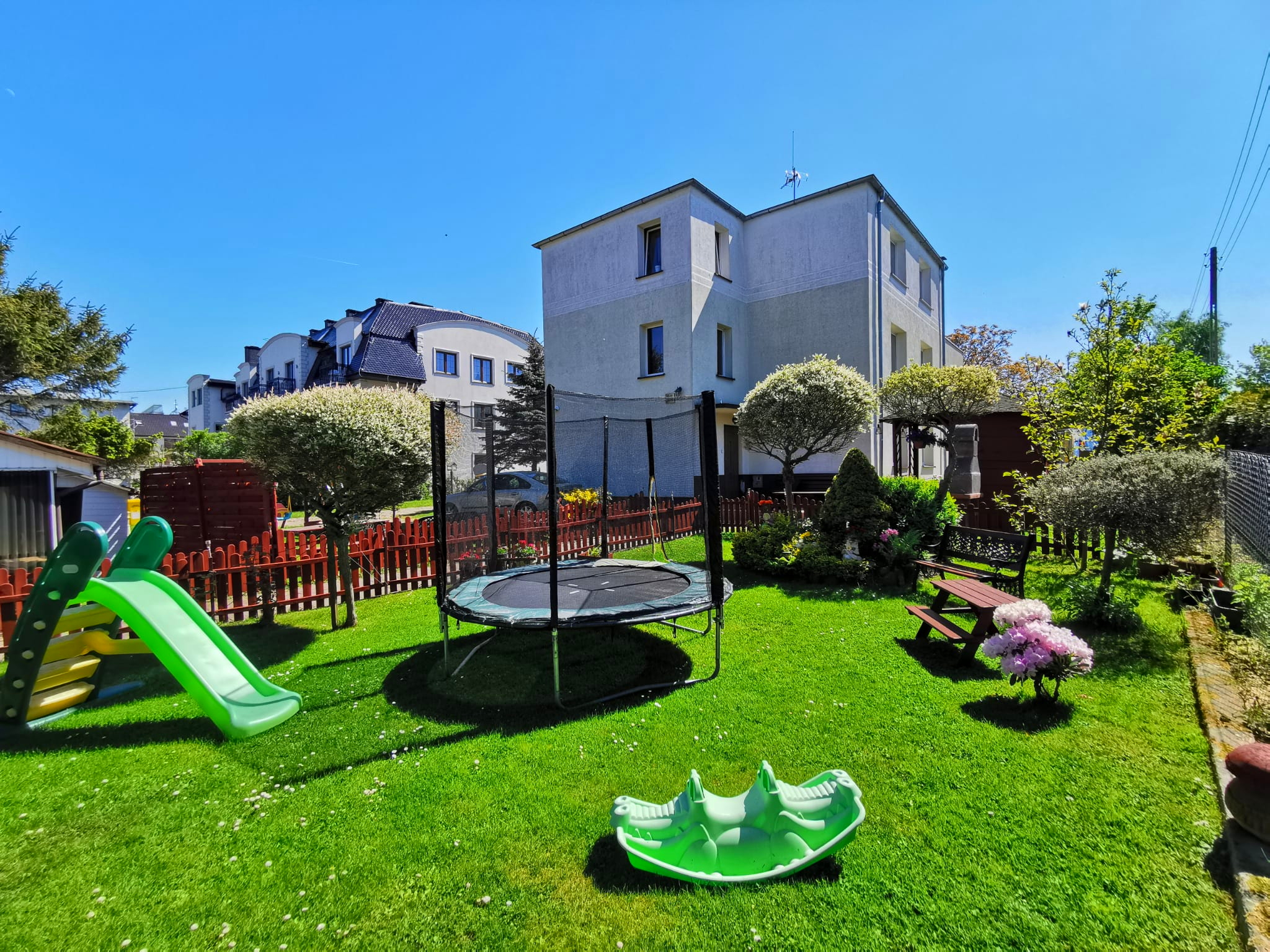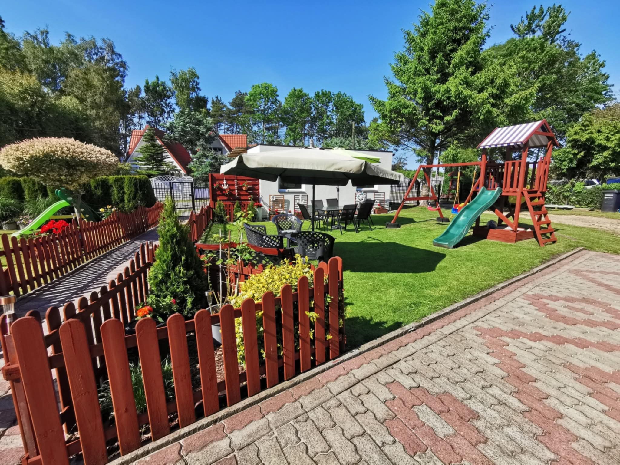 Na zewnątrz do Państwa dyspozycji znajduje się altanka, grill, trampolina, huśtawka ze zjeżdżalnią, piaskownica, basen stelażowy, jak również parking niestrzeżony.