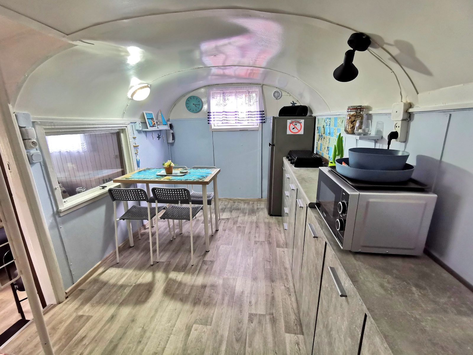 Domek wyposażony jest w: tv z dekoderem, talerze, kubki, sztućce, garnki, czajnik elektryczny, lodówkę, kuchenkę gazową, mikrofalówkę, leżaki, parawan, parasol plażowy, koc plażowy, suszarkę na pranie.